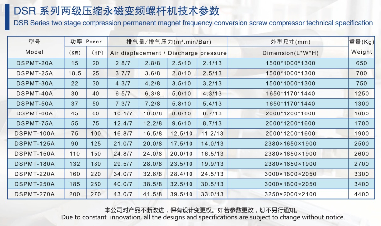 兩級壓縮螺桿空壓機最大的優點就是能效高,同樣的功率,更大的排氣量!